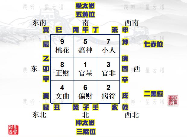 《星云谱》九宫飞星的独特性:“星云谱”九宫飞星不同于其他流派的九宫飞星只看单星,还要看九星之间的组合,即串门星,流年力量最大是串门星