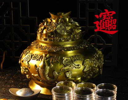 催吉吉祥物:五路财神催财局,中间放聚宝盆
